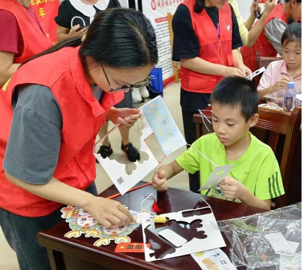 活动共设置手工灯笼制作和游园游戏两个环节。首先,在手工制作灯笼的环节中,在社区工作者和志愿者们的耐心指导下,每位小朋友都化身“巧手匠”,动手制作起属于自己的灯笼,在一片欢声笑语中体验传统手工艺的乐趣;当一盏盏精美的灯笼诞生时,大家手持自己的作品,互相展示,脸上都洋溢着开心的笑容,活动现场温馨而幸福。接着进入到游园活动的环节,志愿者们为孩子们设置了“猜灯谜”、“中秋造句”、“古诗接龙”和“成员大王”等游戏。一系列丰富多彩的传统游戏,不仅增添了节日的欢乐气氛,还让孩子们对传统文化有了更深的感官体验和喜爱。